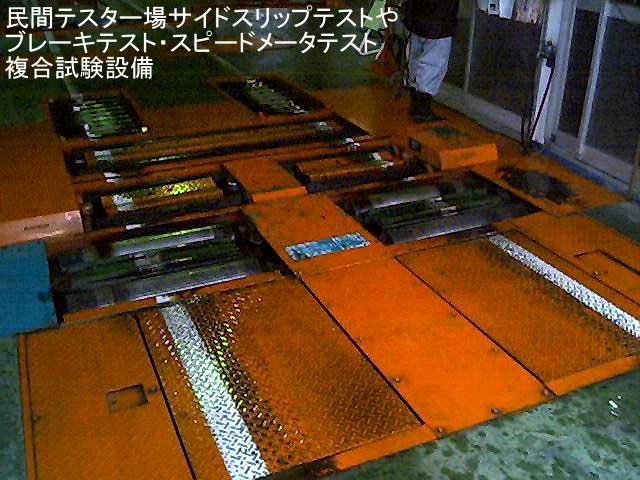 [top↑][next↓] 前輪ブレーキテストが終了すると、凹み間隔が狭くなり、タイヤを元の高さ位置へ戻されます。 車を凹みから出して、今度は後輪を同じ凹みに落とします。行き過ぎないように注意して下さい。 前輪ブレーキと同じ手順で、検査されます。 「ブレーキをふむ」が点灯したら、「ガツン」とふむ。 合否判定は前輪ブレーキと同様です。スピードメータテストは順序が前後する事があります。電光掲示板を良く見てその指示に従って下さい。 写真は民間テスター場のブレーキテスト検査機械です。 (車検場によって検査機械の並びや型式は異なるのであくまで参考に) |